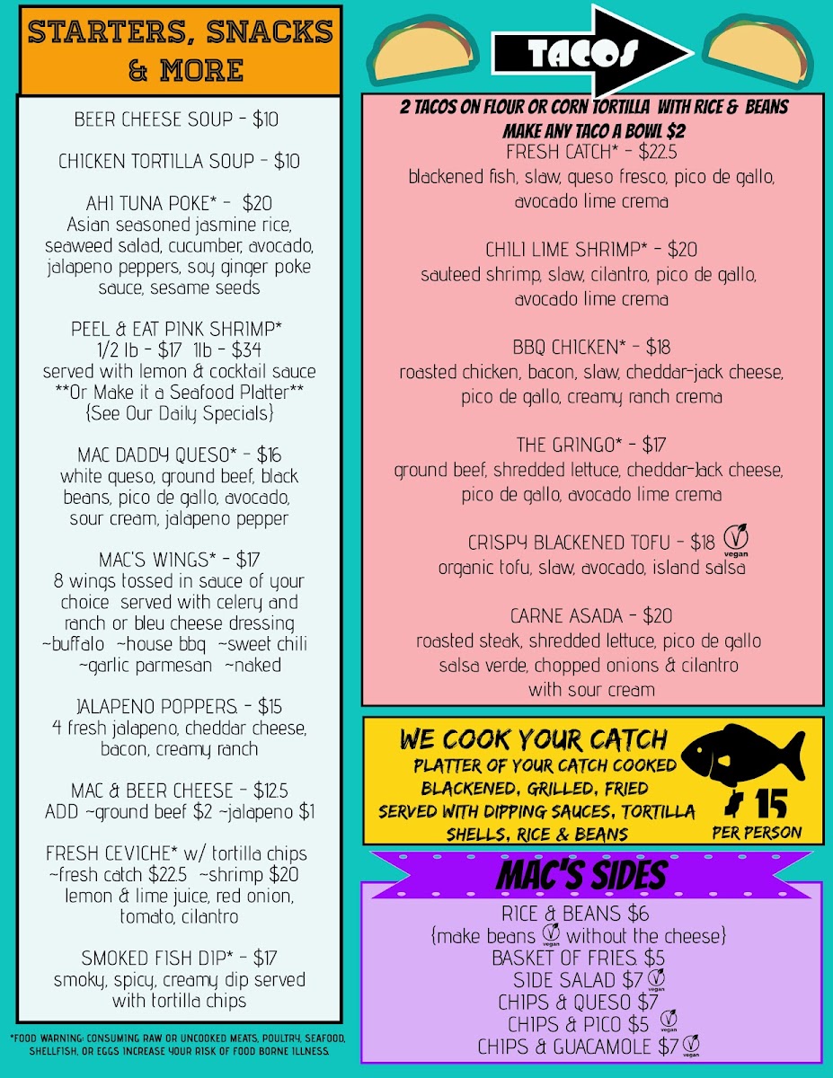 “ First time trying Mac's place and I have to say it's a great restaurant! The food is really good, the servers are very friendly (Thank you Bethany), and the atmosphere is wonderful. We were here during happy hour , we ordered the Sliders, the Gringo taco, kids tenders w/fries , kids Mac n Cheese The Sliders were Huge and very tasty! The tacos were really good , and kids loved their tenders and Mac. Prices are very reasonable for the quantity and quality of food Live entertainment too! I highly recommend you try Mac's place ”